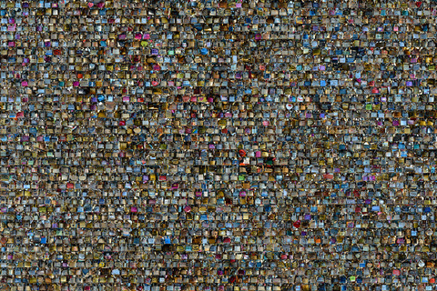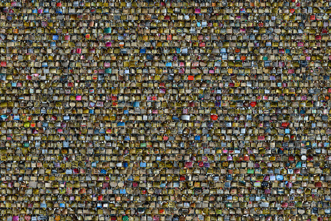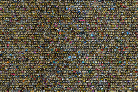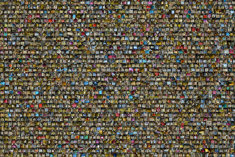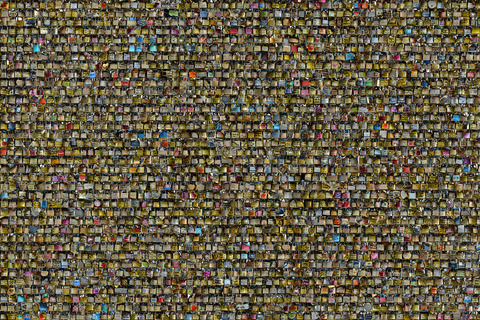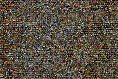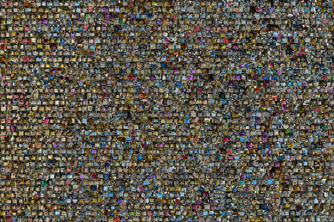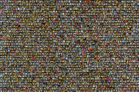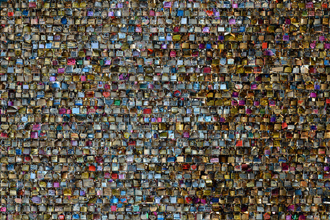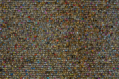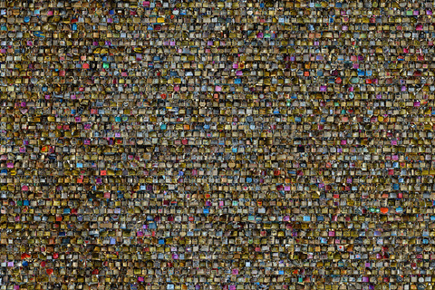 Expliqué simplement, chaque côté du pont est composé de 56 panneaux. Nous avons créé les formats basés sur cette unité de mesure du panneau. Les 915 œuvres sont composées des cadenas localisés précisément dans chaque zone.